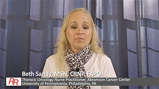 In the final video of this Rapid Reactions series, Beth Sandy, MSN, CRNP, FAPO, discusses data that continue to favor first-line amivantamab plus lazertinib over osimertinib in patients with EGFR-mutant advanced non-small cell lung cancer after a median of 31 months of follow-up.